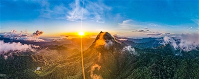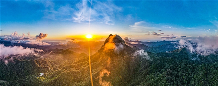 清晨的日光从林隙中透下,昭示着海南热带雨林国家公园霸王岭片区全新的一天来临。