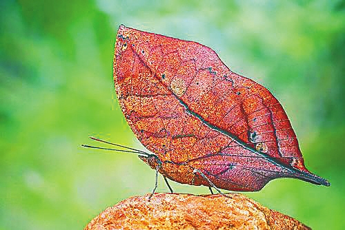与此同时,海南热带山地雨林中也分布着“中国蝶王”:裳凤蝶和金裳凤蝶。这两种形态相似的蝴蝶是我国蝶类中体形最大的种类。飞行时,后翅黑黄相接的部分金光四逸,绚丽夺目,具有极高的观赏价值。