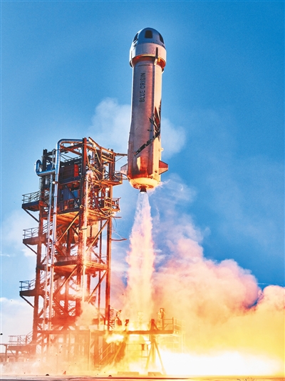 今年7月20日,“新谢泼德”飞行器完成首次载人太空试飞,蓝色起源公司创始人、亚马逊公司前首席执行官杰夫·贝索斯等4人参与首次试飞。