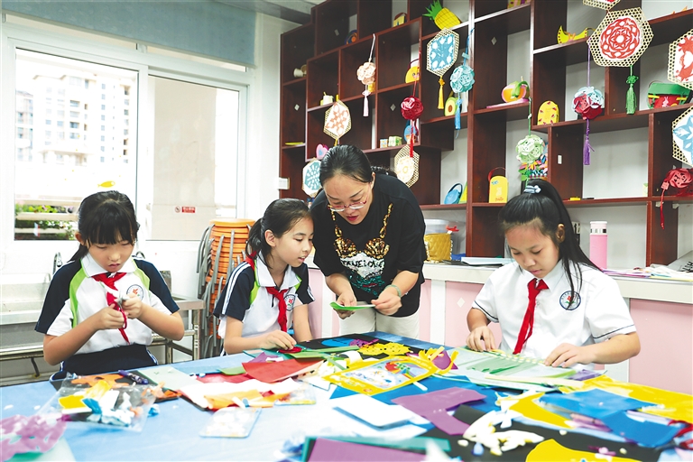 “我们学校两个校区共有4000多名学生。本学期推出校内课后服务后,学生踊跃报名参加。截至目前,已有超八成学生参加。”海口市第二十五小学教导处主任李娟介绍,“双减”背景下,根据要求,学校要充分利用好课后服务时间,指导学生认真完成作业,对学习有困难的学生进行辅导与答疑。“我校校内课后服务的基础托管基本由班主任、科任老师负责,他们对所在班级学生的情况更了解,指导学生学习更有优势。”