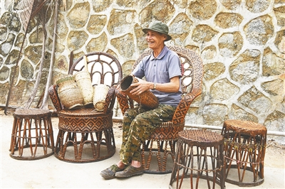 “用野生藤竹编织家用器皿,是我们黎族人的传统,没想到现在还能给我们带来经济收入。”在海南省昌江黎族自治县七叉镇大仍村,如今51岁的黎族妇女陈桂红作为黎族传统藤编手工艺人,正用自己的双手“编出”一条文化传承和发家致富相结合的新路。除了衣篮、刀箩、米筛、斗笠等,鱼篓也是一大“热门”藤编器皿。