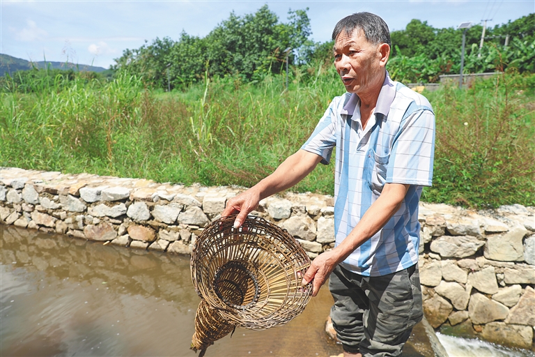一根根藤条在手中“脱胎换骨”,往返穿插间,黎家人制作出轻便又耐用的鱼篓。想要捕鱼又不想费时费力,就把装有蚯蚓的鱼篓放进水中,鱼钻进去后,便再难逃出。在五指山市毛道乡南冲村黎族藤编匠人黄青华的家中,有着不同时期制作的藤编鱼篓,有的已使用多年,目前依旧很坚固。