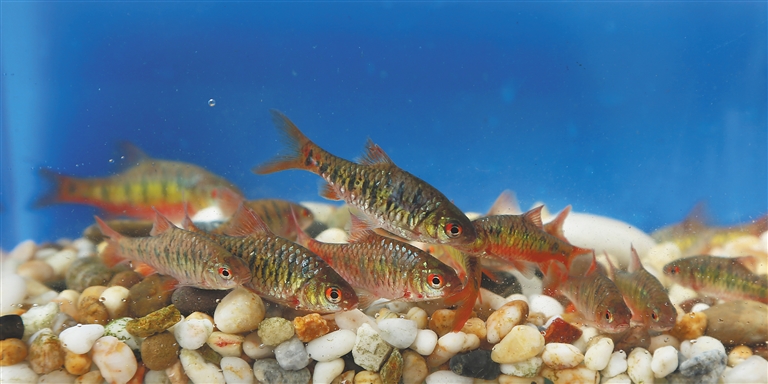 “溪吻虾虎鱼是小型淡水鱼,虽然只有小拇指大小,却争强好胜。还有美丽小条鳅,这种鱼鱼身中部有荧光绿色的鳞片,背鳍呈红色,属于体色变化现象,可能是一种到了生殖期显现出来的‘婚姻色’。这些特点在照片中是能被看到的。”海南省海洋与渔业科学院淡水渔业研究所副所长蔡杏伟解释道。