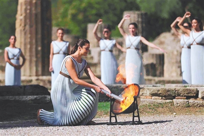 10月18日,北京冬奥会火种在奥林匹克运动的发祥地——希腊伯罗奔尼撒半岛的古奥林匹亚采集成功。 新华社记者 郑焕松 摄