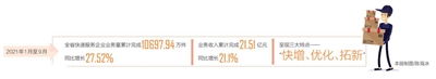 2021年以来,全省邮政快递业发展呈现“快增、优化、拓新”三大特点。得益于全国对海南水果的需求增大、电商促销发力、“快递进村”激发农村快递市场活力等,自5月起,全省快递业务量同比增幅连续4个月保持在30%以上,高于全国平均水平,三季度以来每月快递业务量保持在1000万件左右。