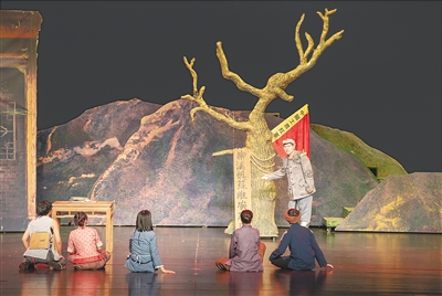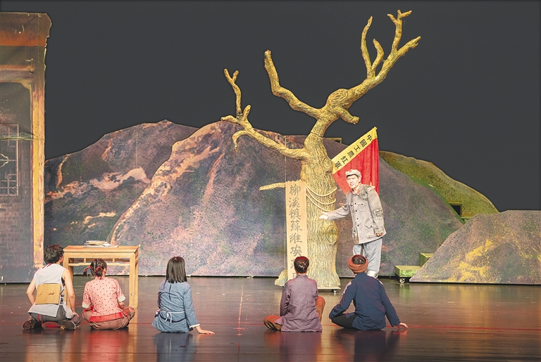 近日,根据著名作家李心田的小说《闪闪的红星》改编的青春国潮舞台剧《永远闪闪的红星》在海口湾演艺中心上演。图为舞台剧演出现场。