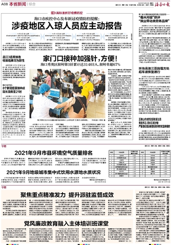 ~~~海口秀英区接种第3针累计达31403人,接种率超67%