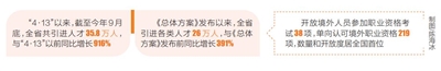 开放境外人员参加职业资格考试38项,单向认可境外职业资格219项,数量和开放度居全国首位,大力集聚境外优秀人才为海南自由贸易港企业和居民提供专业化服务。