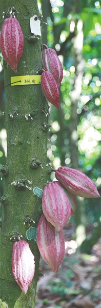 全球化深刻改变了人类的生活方式,也同样深刻改变了科研的路径。中国热带农业科学院香料饮料研究所的科研人员放眼全球开展可可研究与交流。10年时间里,他们从厄瓜多尔、哥斯达黎加、巴西、科特迪瓦、斯里兰卡、马来西亚、印度尼西亚、斐济等20多个国家收集保存各类种质资源,目前资源圃保存有可可资源500多份,种质资源保存量位居亚洲和大洋洲第三位,并首次引进大花可可、双色可可等野生种2种。他们既研究有生产价值的品种,也研究有观赏价值的品种。