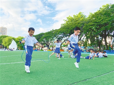 在音乐老师的指挥下,学生们跟着琴声唱起美妙的歌曲;在美术老师引导下,学生们在画纸上尽情描绘……在三亚市崖州区水南小学,放学后的校园里热闹非凡。“我们学校的课后服务内容有基础性学业辅导,也有拓展性活动,除了组织体育、音乐、美术、口才、书法等兴趣小组,还成立了合唱社团、美术社团、乐器社团、足球社团。”水南小学校长林盛说,该校913名学生已经全部报名参加学校的课后服务。
