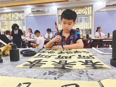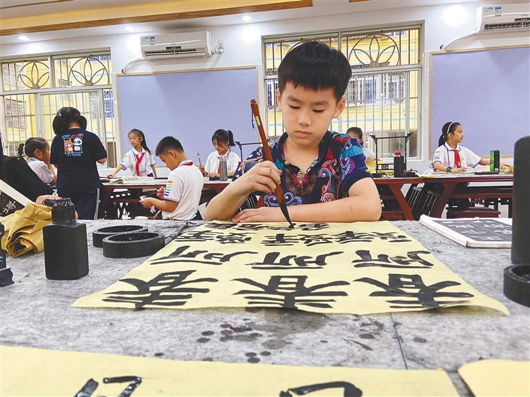 为了丰富学校课后服务资源,海口市长滨小学统筹校内外资源,开设了书法、篮球、足球、美术、口语与主持等12门课程。“学校严把外聘教师关,邀请经验丰富、有资质的‘外援’力量丰富课后服务内容。全校共有942名学生,860名学生参加了校内课后服务。”海口市长滨小学校长王先云说。