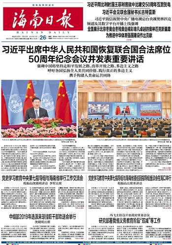 习近平出席中华人民共和国恢复联合国合法席位 50周年纪念会议并发表重要讲话