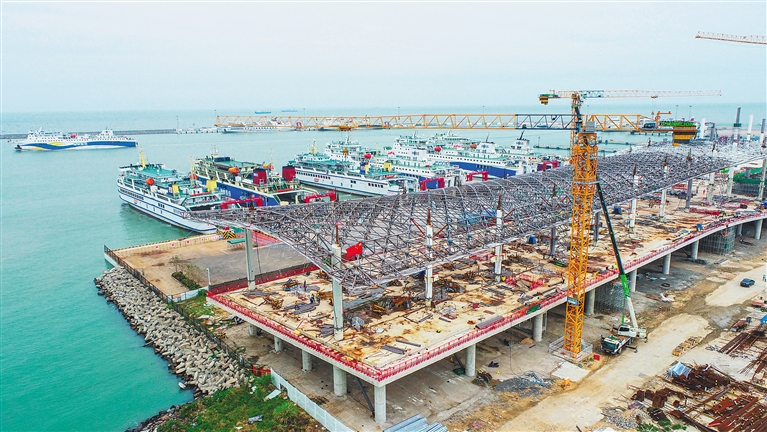 近日,海口新海滚装码头客运综合枢纽站工程项目施工现场一片繁忙。目前,该项目完成过半,施工单位正全力奋战加快进度。据了解,该项目建成后将大大提高新海港的接待服务水平。本报记者 张茂 摄