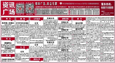 ●刘园园、常宏鹏不慎遗失海南华侨城实业有限公司开具的华侨城曦海岸项目认购书两份,共2页。认购书分别为:西区一号地块5-203房的认购书(编号0002901)和西区一号地块,地下一层车位474的认购书(编号0002902),声明作废。