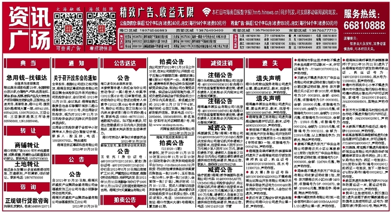 ●水新燕不慎遗失准迁证,编号:琼01200068,声明作废。