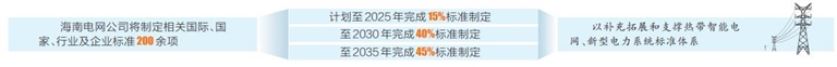 按照规划,海南电网公司将制定相关国际、国家、行业及企业标准200余项,计划至2025年完成15%标准制定,至2030年完成40%标准制定,至2035年完成45%标准制定,以补充拓展和支撑热带智能电网、新型电力系统标准体系。“十四五”期间按照热带环境适应性、热带防灾减灾、热带可再生能源与微网的先后顺序逐年完善标准制定。