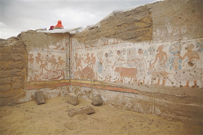 这是在埃及首都开罗以南的塞加拉地区拍摄的陵墓内的壁画。