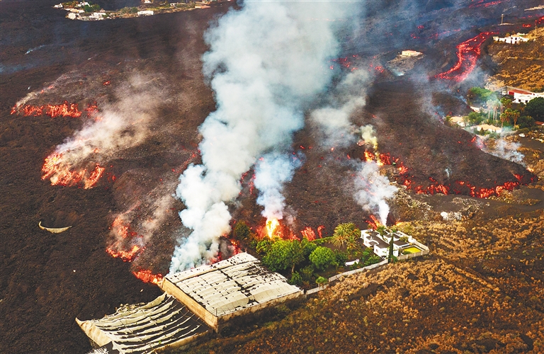 监测数据显示,这座火山9月19日喷发以来,岩浆吞噬了900多公顷土地,相当于1300多个足球场面积。岩浆温度高达1300摄氏度,摧毁2500多栋建筑和多座香蕉种植园。