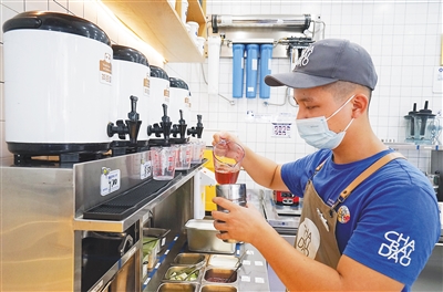 位于三亚市蓝海购物广场的一家茶饮店,顾客络绎不绝,一杯茶饮成为每个人手里的“标配”。操作台旁,几位调饮师根据客户的喜好,调制不一样的饮品,“少糖”“半糖”“去冰”“少冰”……每杯都有精确的量度,一点都不能马虎。