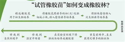 “到2008年的时候,成活率依旧很低。实验室里1000多株橡胶树组培苗,移栽到室外仅存活了10棵,成活率在1%左右。”黄天带叹了一口气说,前几年科研没做出成果,大家心里都堵堵的。