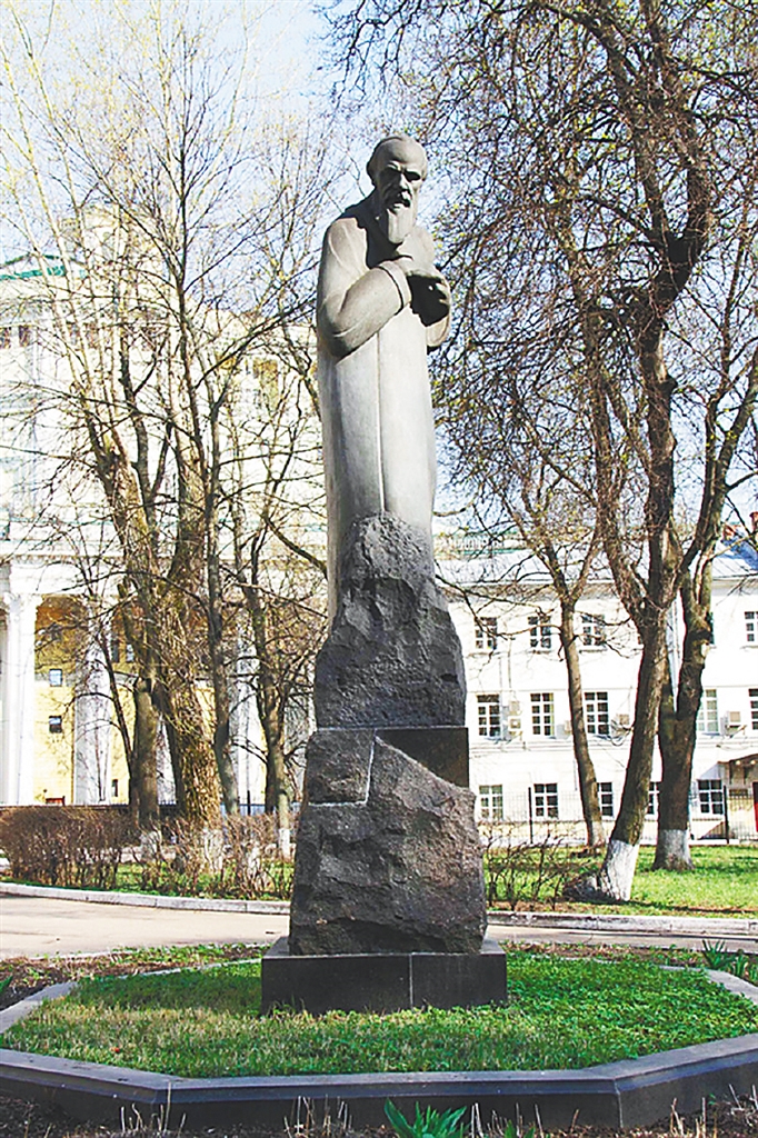 院子里有一尊陀思妥耶夫斯基全身塑像,身穿长衫,神色忧郁。故居里只有两个房间和一些辅助性设施,与俄罗斯其他文豪旧居相比,显得有些简陋和寒碜。走进房门,迎面桌子上放着一本圣徒彼得保罗教堂的笔记簿,如实记录着在1814年—1823年间本教区教民的婚嫁生死,陀思妥耶夫斯基出生情况记在第148页上:“(1821年)11月,贫民医院的校级军医米哈伊尔·安德烈耶维奇·陀思妥耶夫斯基家里生下一名婴儿,起名为费多尔。”这个孩子就是后来蜚声世界的俄罗斯文豪陀思妥耶夫斯基。