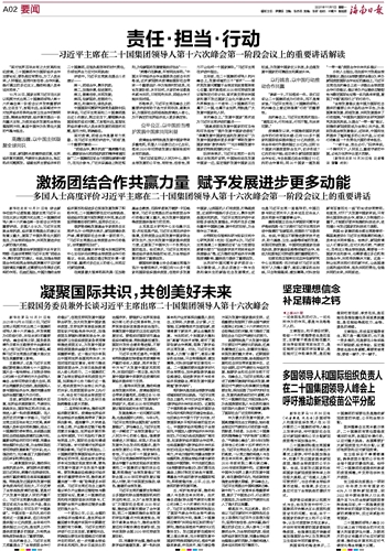 ~~~——多国人士高度评价习近平主席在二十国集团领导人第十六次峰会第一阶段会议上的重要讲话