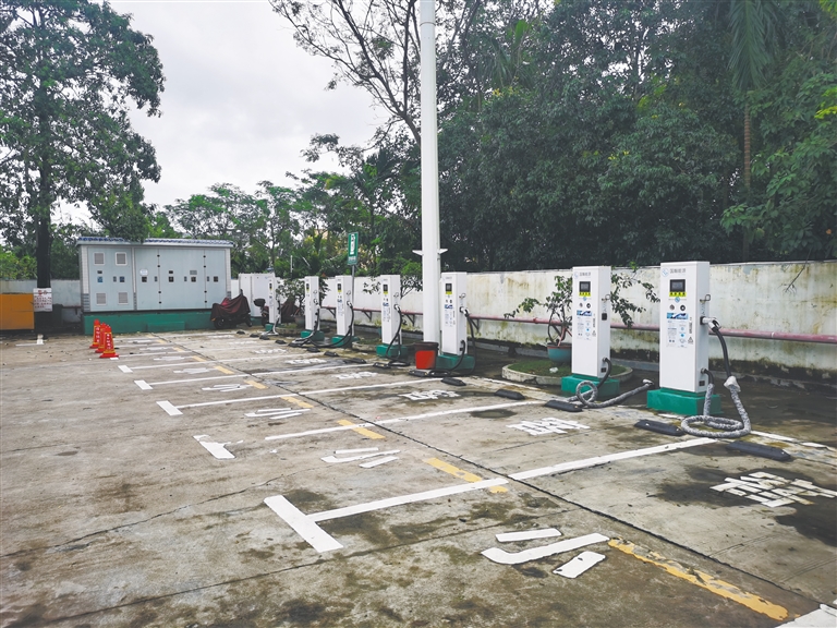 该服务站站长蒙美任介绍,一个多月前,8个充电桩中有4个已经无法使用,前段时间遭遇台风天气之后,另外4个充电桩也无法使用了。尽管他们已经报修,但是充电桩安装公司却一直未派人前来维修。此外,由于受到服务区场地限制,琼海中原(东侧)服务区并没有安装充电桩,这就导致不少途经服务区的新能源车主只能绕行至琼海市区和博鳌镇上充电,非常不方便。