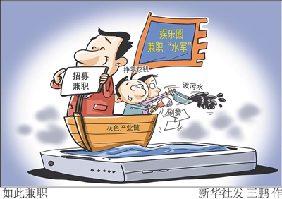 刷好评、写推广软文、泼污水……有的一个月能挣上千元。“新华视点”记者调查发现,游走在灰色地带的网络“水军”主要是一些兼职人员,他们在网上接单,兼职做“水军”挣零花钱。