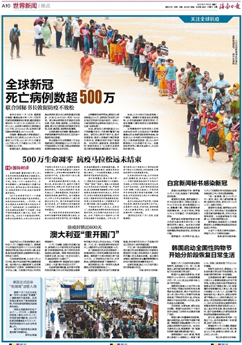 全球新冠死亡病例数超500万