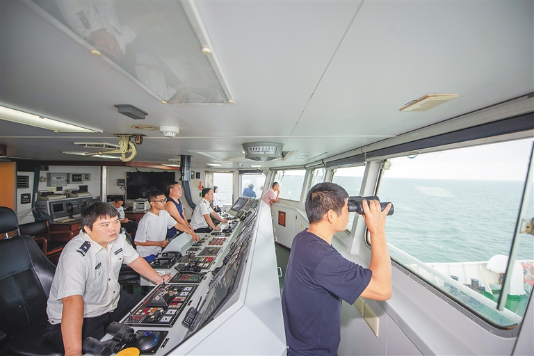 11月1日,海南省渔业监察总队执法船艇上,工作人员在进行执法工作。文/本报记者 傅人意 通讯员 周让学 图/本报记者 袁琛