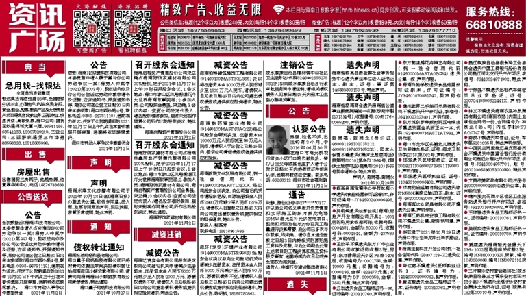 ●海南生资科技开发公司(统一社会信用代码:28407123-X)遗失公章,声明作废。