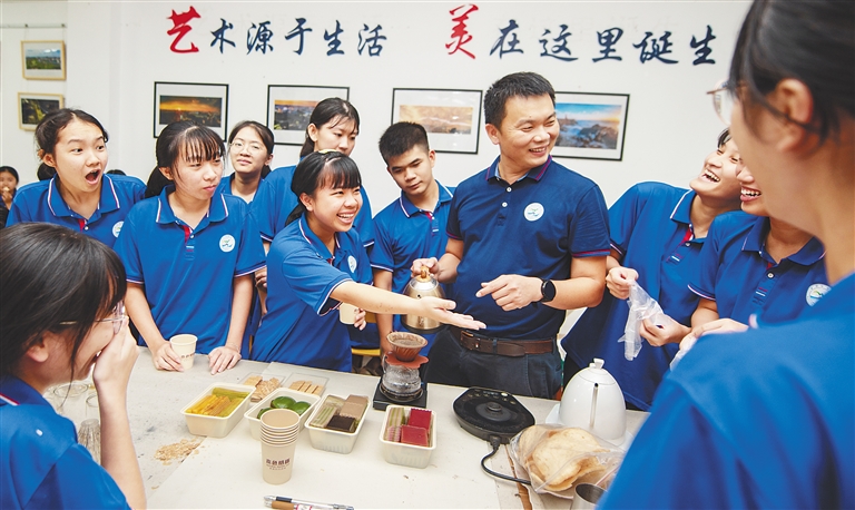 11月3日,在万宁中学,学生们在上万宁美食品鉴课。
