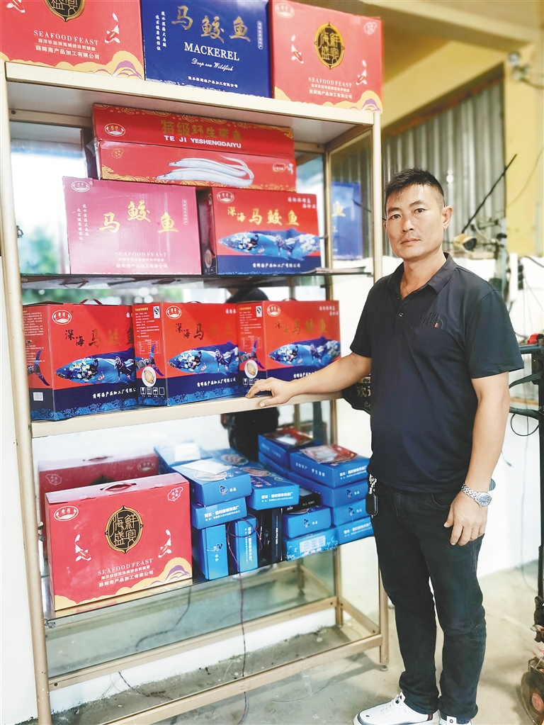 薛忠在陵水新村镇上买了地,现在的海产品加工厂、冷库就是在他自己的土地上建起来的。“马鲛鱼是公司加工的主打海产品,我经常要驱车跑海南各大渔港,掌握海产品市场行情,与渔民建立长期联系。休渔期来临前,冷库要囤一些货,在休渔期间再慢慢投放市场。”薛忠表示。