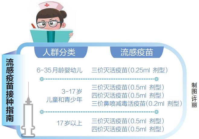 邱丽表示,三种流感疫苗的适用年龄有所不同。三价灭活流感疫苗适用于6月龄以上人群,四价灭活流感疫苗适用于3岁及以上人群,三价减毒活疫苗适用于3-17岁人群。另外,三价流感疫苗可以预防甲型H1N1、H3N2和乙型BV三个型别的流感病毒,四价流感疫苗在此基础上还包含有BY型流感病毒免疫抗原。根据年龄等选择合适的,都是有效的。