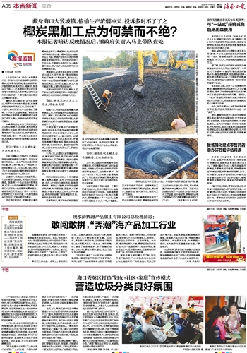 藏身海口大致坡镇,偷偷生产浓烟冲天,投诉多时不了了之~~~本报记者暗访反映情况后,镇政府负责人马上带队查处