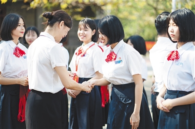 海口旅游职业学校处处风景如画,其中最靓丽的风景即是行走于校园的每一个学生——他们身着素雅的职业套装步履匆匆,但面对来人总不忘停下脚步颔首问好。