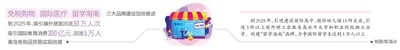《规划》提出,要通过发展免税购物、国际医疗、国际教育积极承接海外消费回流。加快推动海口新海港免税城建设,推进海口美兰机场二期免税店、海控全球精品(海口)免税城三期,三亚中服国际免税购物公园二期,深免海口观澜湖免税购物城二期改扩建,进一步提升免税商业设施环境。统筹离岛免税商品提货点建设,实现提货窗口统一、监管统一、客服统一,提升购物体验。新增离岛免税城市和免税店。到2025年,引进建设国际高中、国际幼儿园15所左右,引进3所以上境外理工农医类高水平大学和职业院校独立办学。创建“留学海南”品牌,力争国际留学生达到1万人以上,国际教育消费回流5万人以上等。