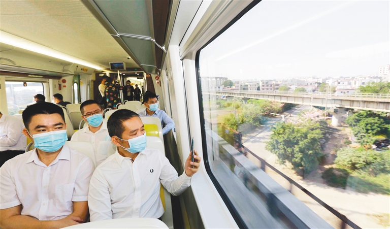 本报金江11月14日电 (记者高懿)11月13日上午,海南环岛高铁老城镇站至美兰机场段市域列车开通仪式在澄迈举行,该段列车已开放售票。