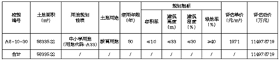 根据有资质的土地评估中介机构评估,并经评估专家小组评审通过,该宗地土地评估单价为1971元/m2(折合131.40万元/亩),土地评估总价为11497.8719万元。