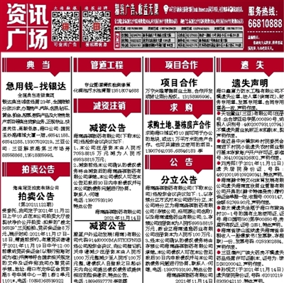 ●刘秀茹(于2021年11月12日)遗失居民身份证,号码:460100195109290341,特此声明。