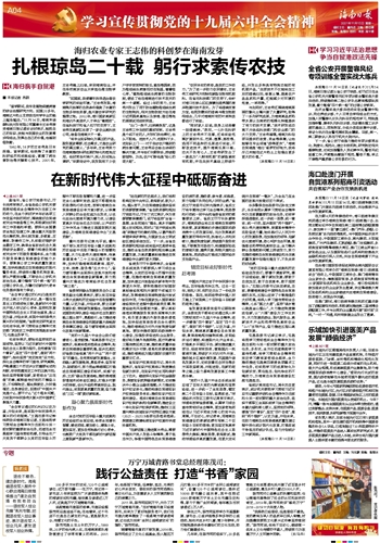| 海南日报 学习宣传贯彻党的十九届六中全会精神 004 2021-11-151 2021年11月15日 星期一 |