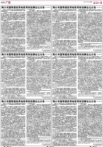 | 海口市国有建设用地使用权挂牌出让公告 | |
