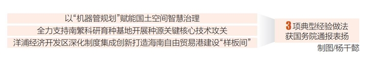 本报讯(记者苏庆明 黄媛艳 实习生徐士闲)近日,国务院办公厅发布《关于对国务院第八次大督查发现的典型经验做法给予表扬的通报》,我省以“机器管规划”赋能国土空间智慧治理、全力支持南繁科研育种基地开展种源关键核心技术攻关、洋浦经济开发区深化制度集成创新打造海南自由贸易港建设“样板间”等3项典型经验做法入选。