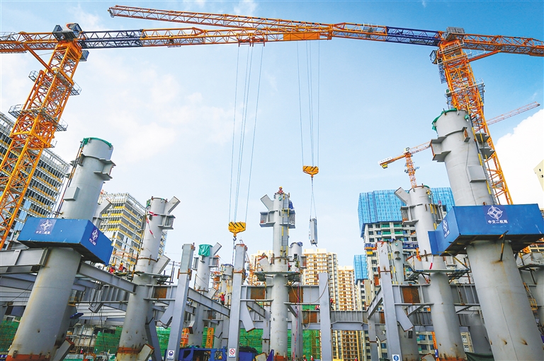 近日,位于海口市国兴大道的中交国际自贸中心项目塔楼钢结构已冲出“正负零”,进入快速“拔高”阶段。该项目计划2023年竣工,建成后将成为大英山CBD的新地标。 本报记者 张茂 摄