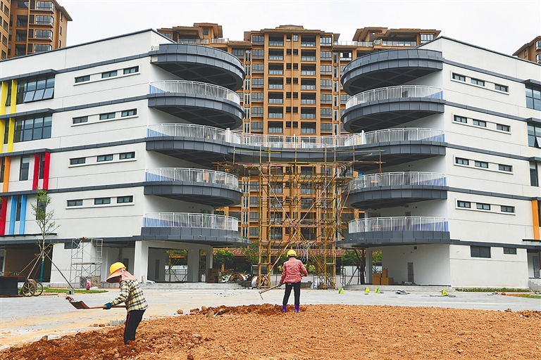 11月12日,工人在琼海市南堀小学工程项目施工现场平整地面。据介绍,南堀小学工程项目为琼海市重点民生工程项目之一,预计11月底落成。项目总投资超2亿元,由6栋教学楼、1栋艺术楼、1栋体育楼等单体建筑组成。学校规划设置72个班级,可提供3240个学位。