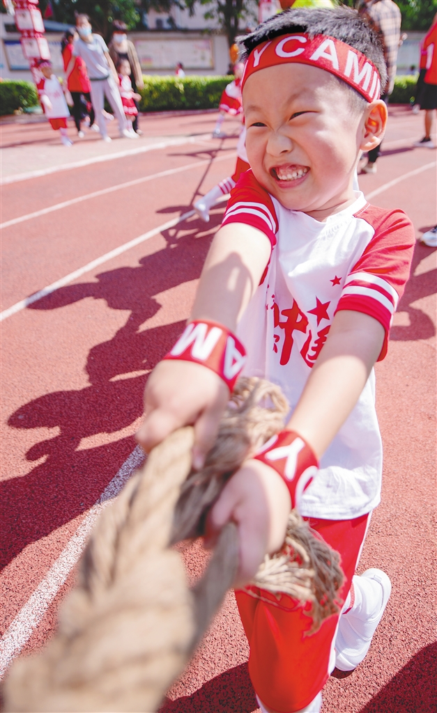11月13日,在海口跨世纪成龙幼儿园秋季“健康快乐”亲子运动会上,家长和孩子们一同体验运动的快乐,加深彼此的情感交流。据了解,该园还引导孩子们对游戏进行记录与分享,提高幼儿在游戏中的学习能力。本报记者 袁琛 摄
