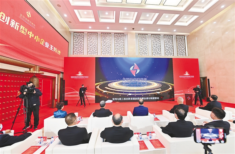 “北京证券交易所正式揭牌开市,是新三板市场积极探索具有中国特色资本市场普惠金融之路的新起点。”中国证监会主席易会满说。