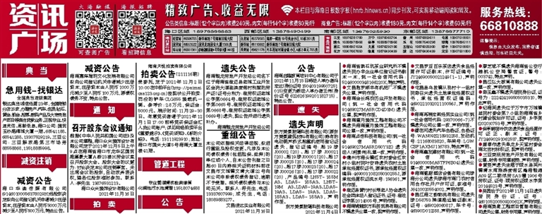 本公司依据相关法律法规,拟进行重组及股权变更。凡涉及本公司债权债务(包括担保、抵押)的单位或个人,自本公告刊登之日起60日内持相关证明材料前往文昌市文城镇文清大道22号向本公司申报债权债务登记,逾期不予受理。相关债权债务与本公司无关。联系人:符先生,电话:13337607999;成先生,电话:18089883277。
