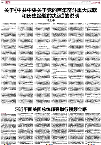 关于《中共中央关于党的百年奋斗重大成就和历史经验的决议》的说明