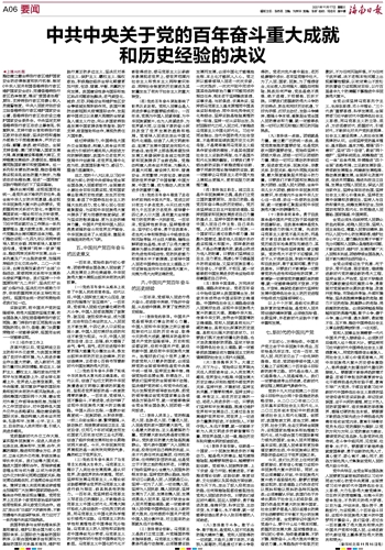 中共中央关于党的百年奋斗重大成就和历史经验的决议